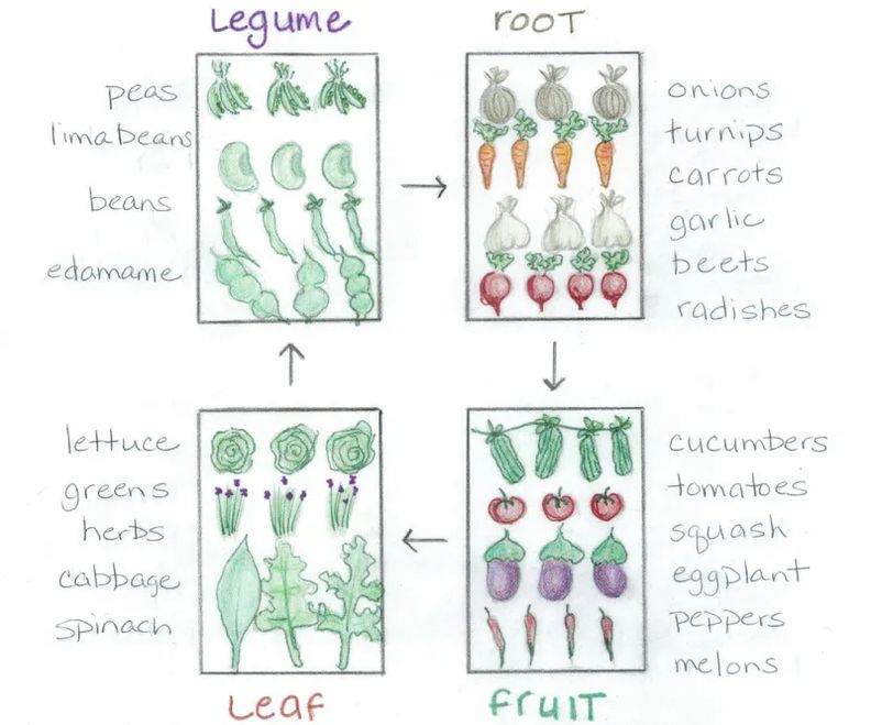 For example, in the place of legumes, next year you can plant onions, garlic, beets or radishes. And in place of lettuce, greens, herbs and spinach, you can plant cucumbers, tomatoes, zucchini and carrots.