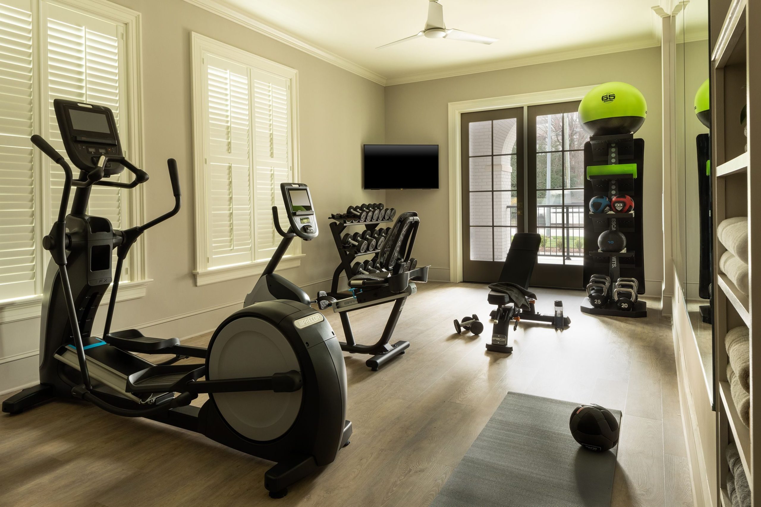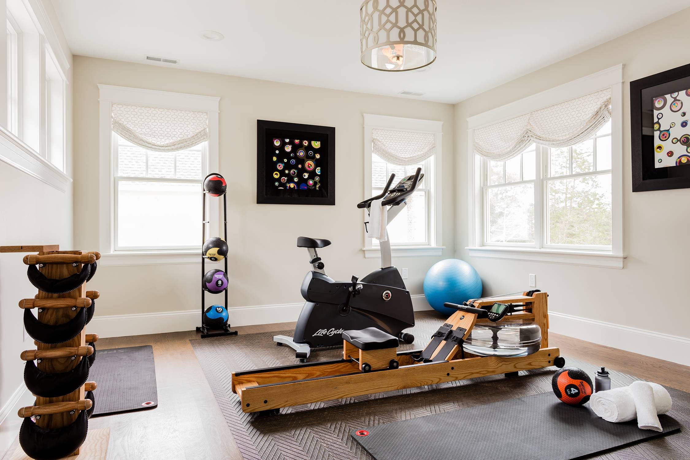 A cluttered gym space is a motivation killer, so masterful storage solutions are key. Embrace wall-mounted shelves, hooks, and racks to corral gear like dumbbells, mats, and bands post-sweat. Think outside the box with storage ottomans or benches that stash smaller items like towels and hydration heroes.