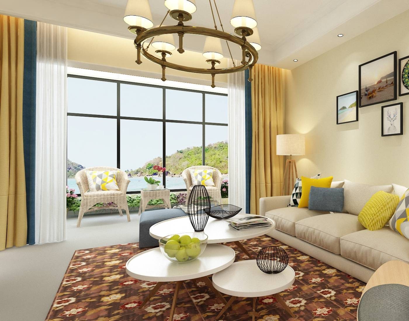 Bring the tranquil beauty of the coast into your living room, where hues of blue and sandy neutrals evoke the soothing rhythms of the sea. Integrate natural elements—rattan, driftwood, and seagrass—to cultivate a laid-back atmosphere that whispers of ocean breezes and sandy shores. Add nautical touches—a striped throw, a rope accent—to complete the coastal reverie.